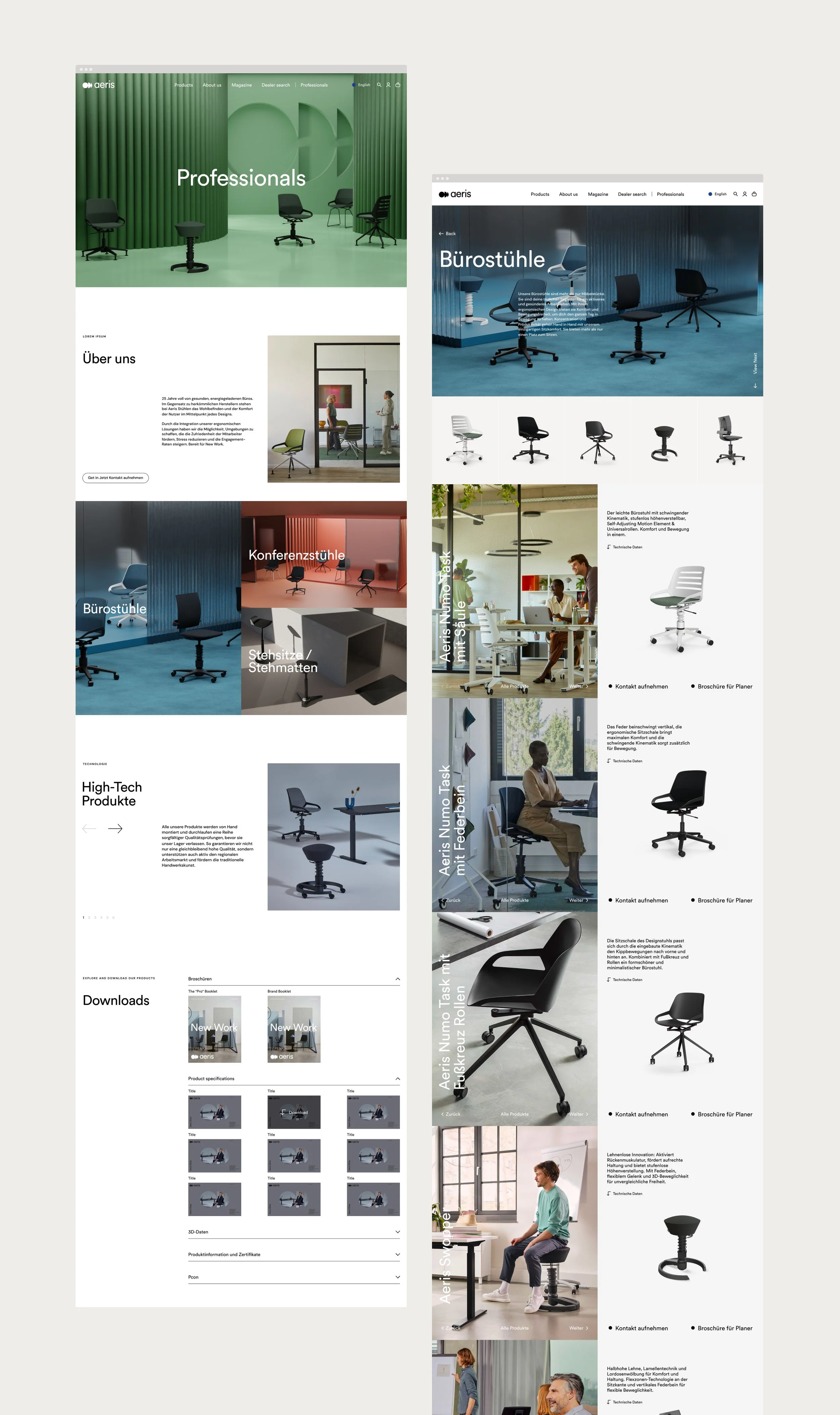 Aeris started by designing a new magazine and brochures intended for a new target audience, the professional sector. The goal was to seamlessly integrate the new language and photography into the existing website, ensuring a fluid and cohesive transition in a smooth way.