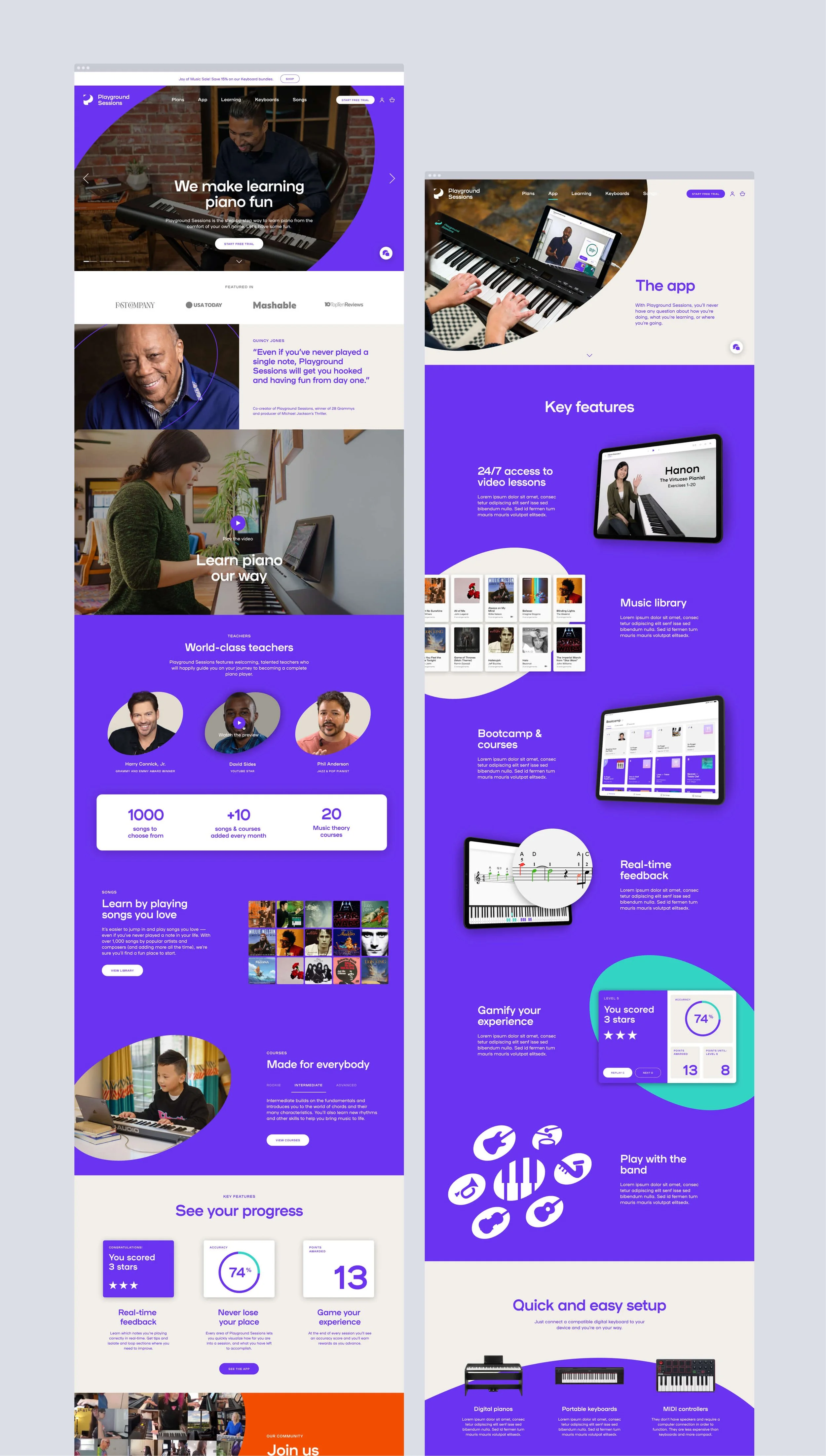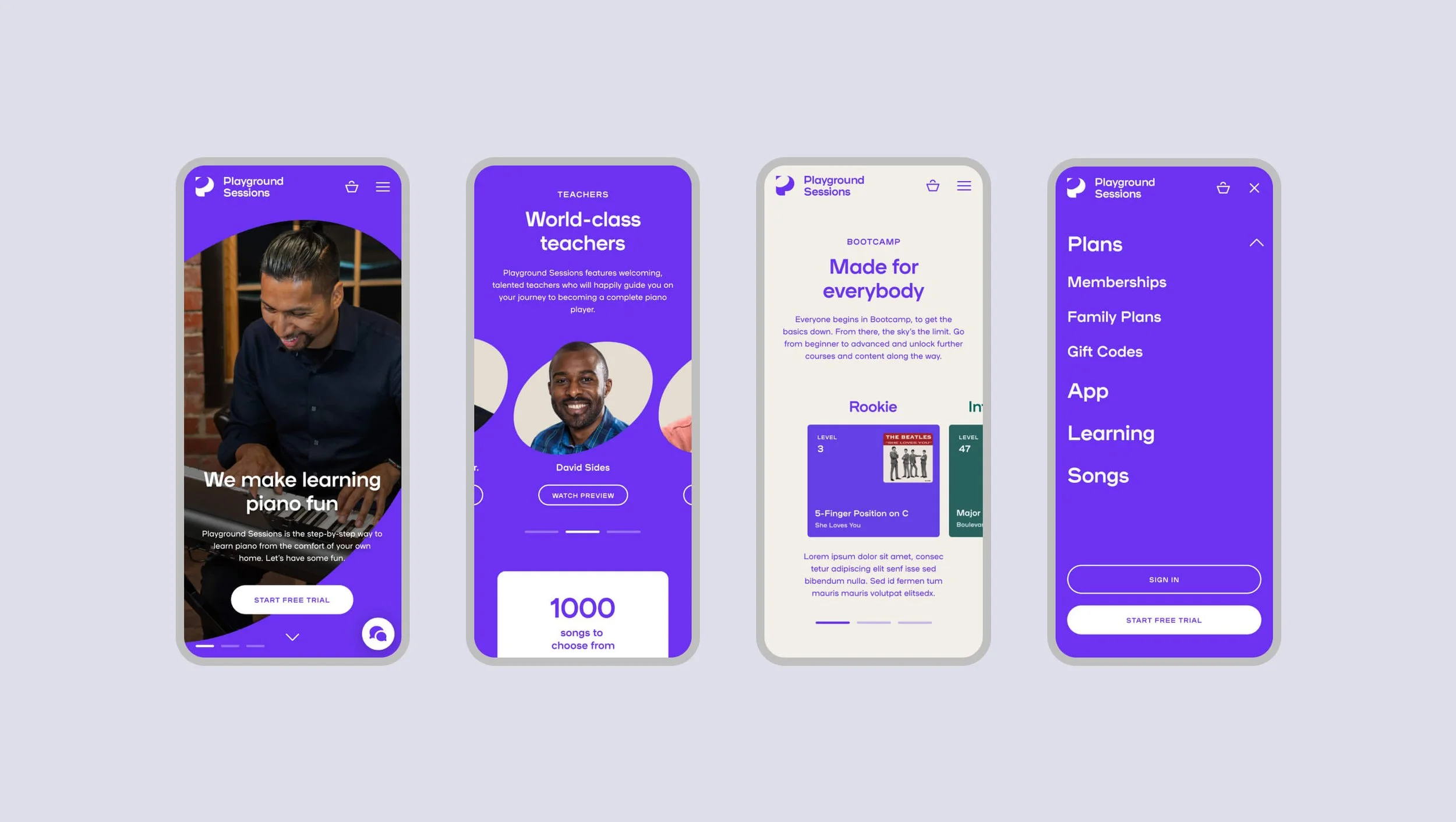 Design a new website that helps showcasing the new brand identity. This will help fuel Playground Sessions’ next chapter of growth by encouraging and inspiring new users to learn how to play piano.